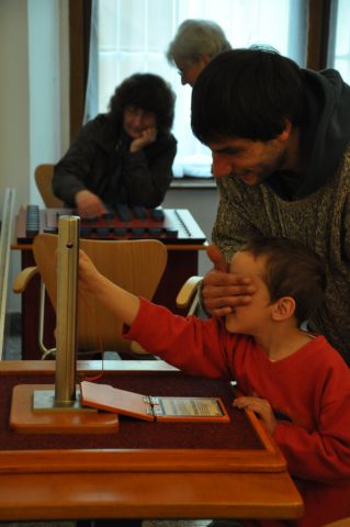 V sobotu 17. května 2014 ve 14.00 hod. se ve výstavních sálech centra konalo slavnostní zahájení interaktivní a vzdělávací výstavy HRY A KLAMY. Vernisáž si nenechalo ujít na desítky zvídavých návštěvníků, kteří se zde procvičili své smysly, reflexy a důvtip. Úvodního slova se chopil kurátor výstavy PhDr. David Junek a příjemné hudební zpestření se postarali studenti poličského gymnázia pod vedením Ellen Erbesové, kteří přítomným zazpívali.