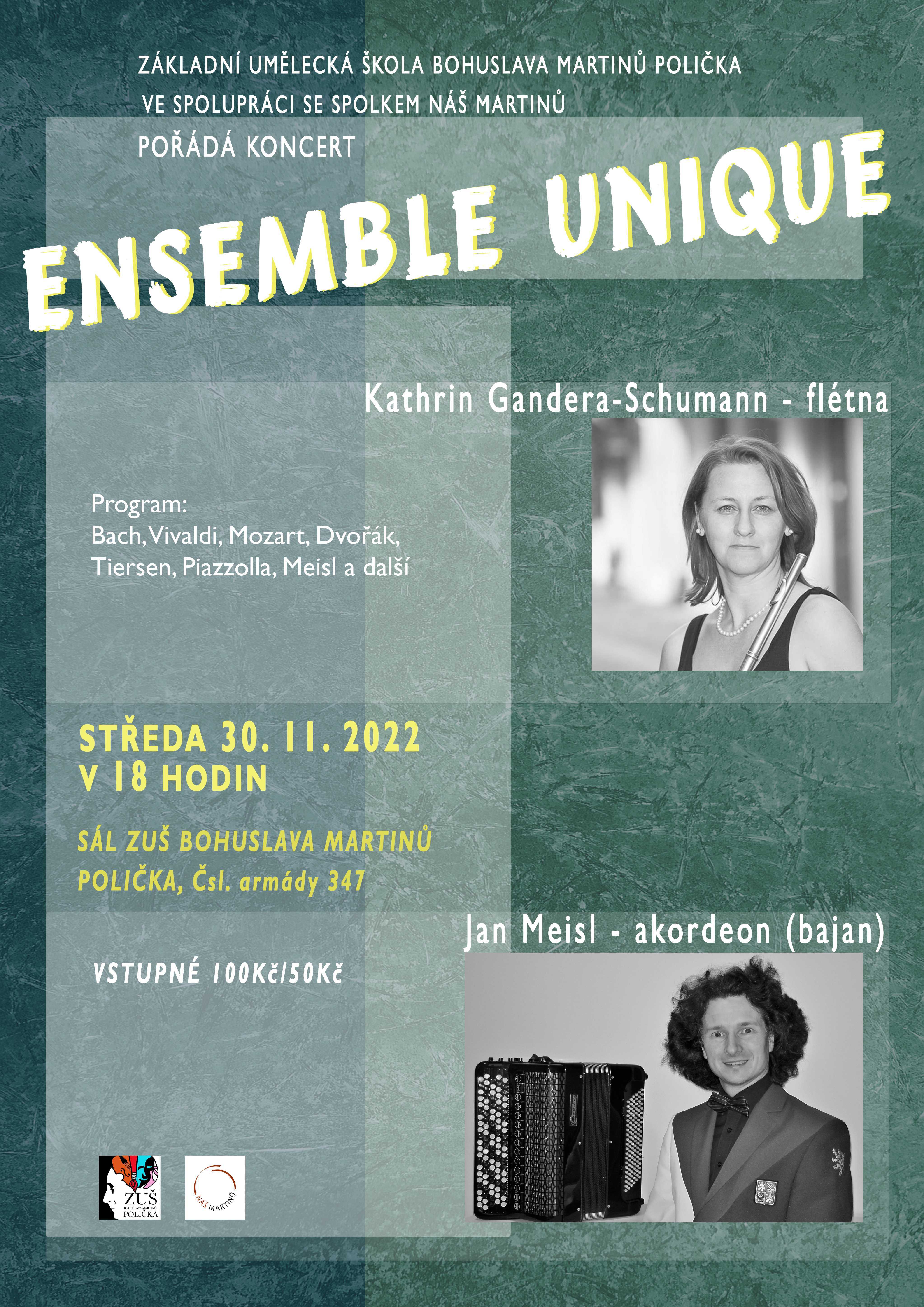 Základní umělecká škola Bohuslava Martinů a Spolek NÁŠ MARTINŮ pořádali koncert, na kterém vystoupili Kathrin Gandera-Schumann a Jan Meisl. Program: Bach, Vivaldi, Mozart, Dvořák a další. Koncert se konal v hudebním sálu ZUŠ Bohuslava Martinů, Polička, Čsl. armády 347.